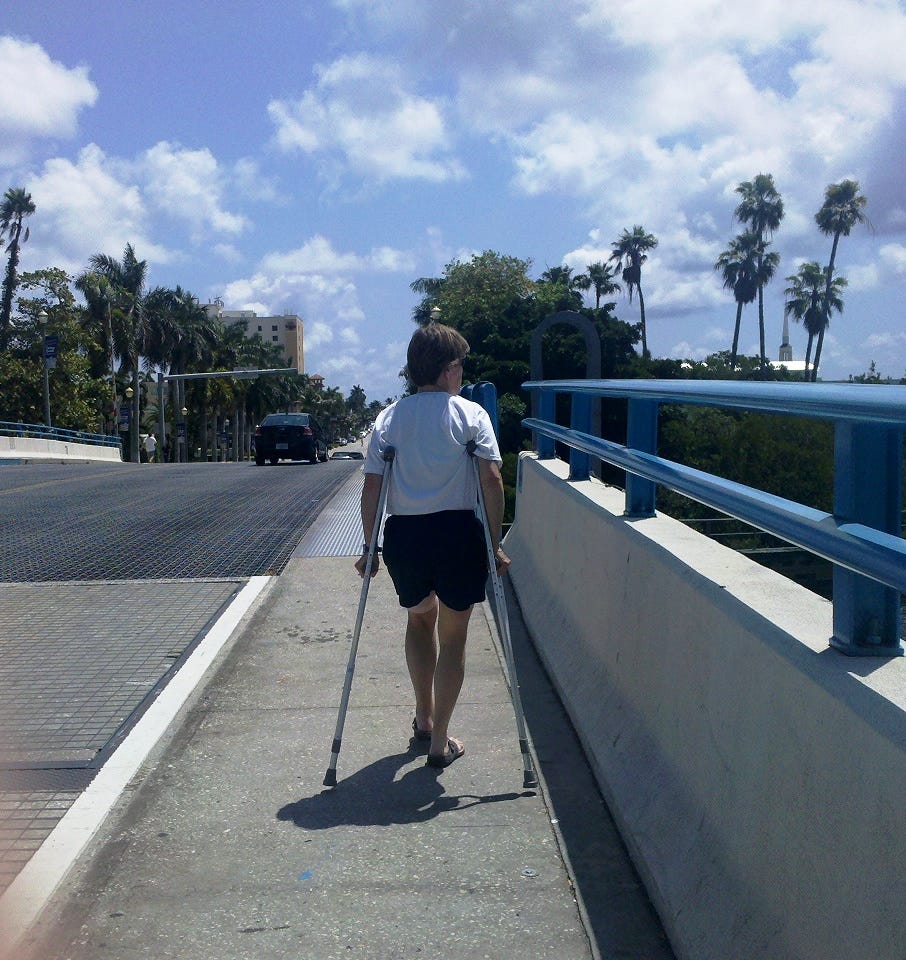 “So, how did you do this?” my very helpful husband, a doctor, asked. “It says here, this injury occurs mostly in bull fighters and water skiers.”